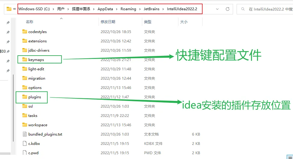 C:\Users\用户名\AppData\Roaming\JetBrains\IntelliJIdea2022.2