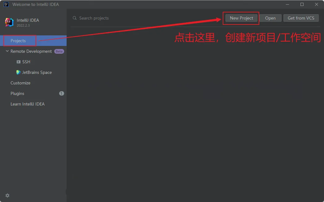 IntelliJ IDEA 没有类似 Eclipse 的工作空间的概念(Workspaces),最大单元就是Project。这里可以把 Project 理解为 Eclipse 中的 Workspace。