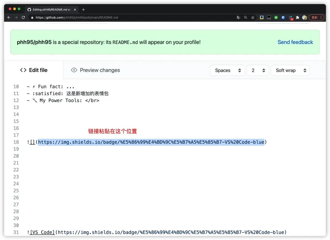 进入编辑状态,这个文档是使用 Markdown 语法来编辑的,如果你之前用过 Markdown 的话,编辑起来应该非常简单,如果你没接触过,想学的话十分钟也可以入门。只需要记住一点,上一行结束时,要在最末尾加多至少两个空格,才能实现换行,否则本来想分行的两行内容会连在一起。