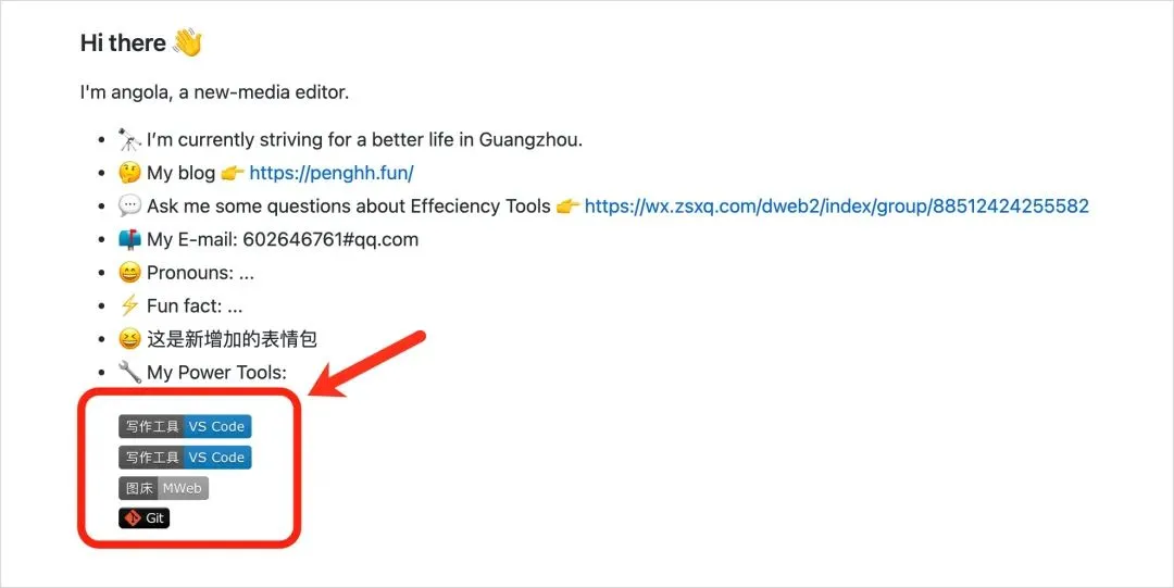 这里着重说一下个人主页中一个看起来比较高级的「小牌子」的实现方法: