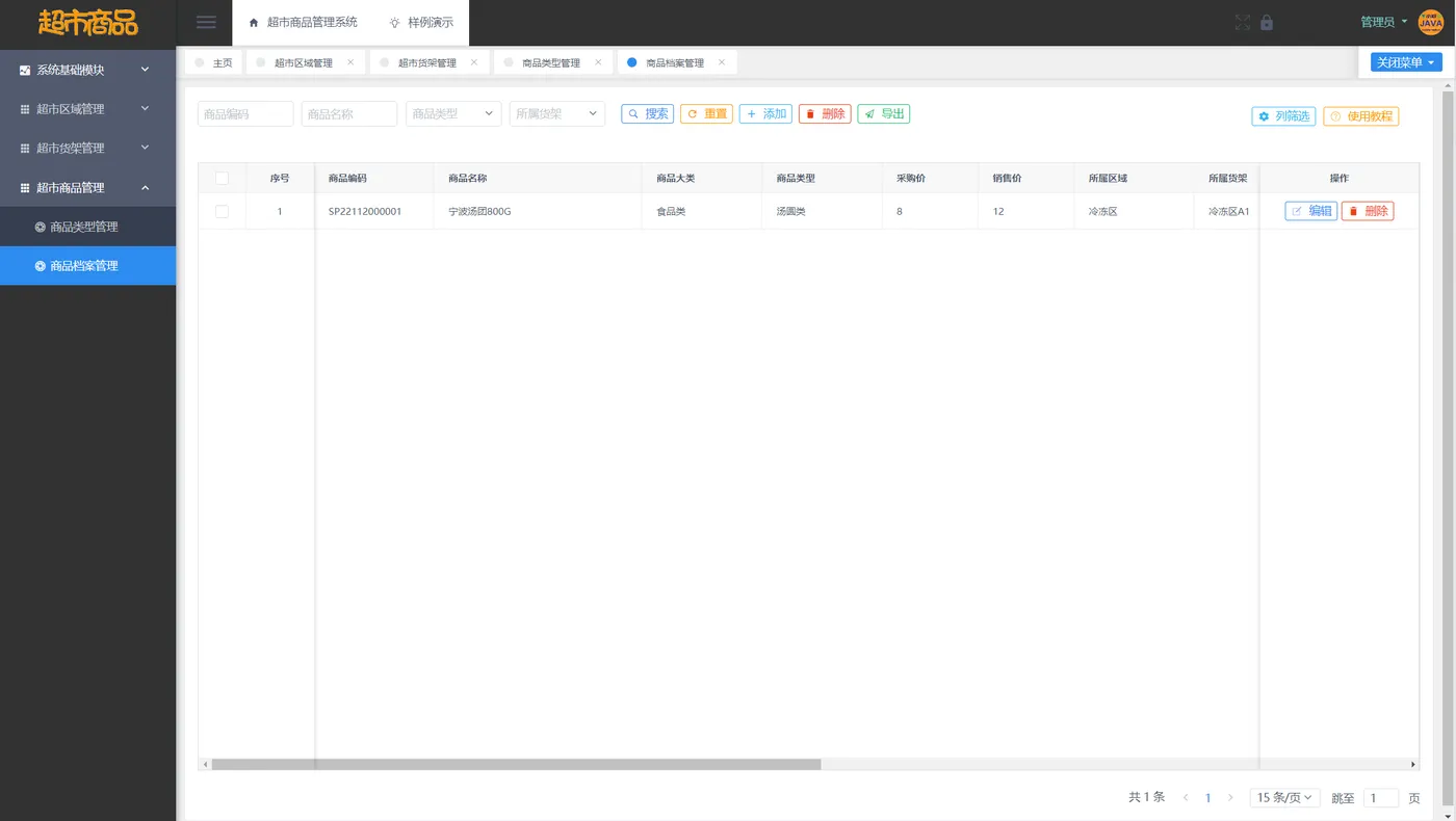 作者提出并设计了超市商品管理系统,从系统整体结构设计出发,提出了超市商品管理系统的五大功能模块,最后实现了超市商品管理系统的开发。