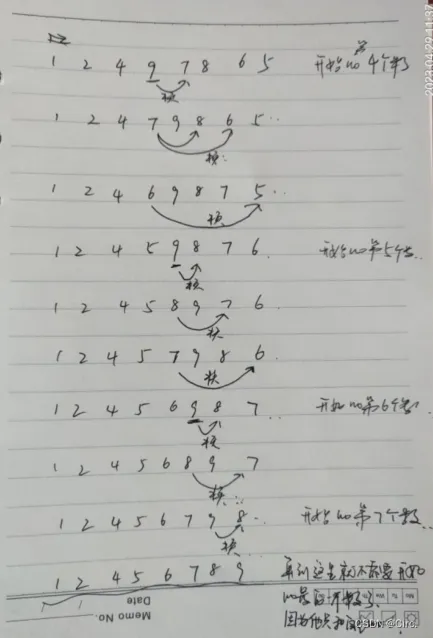 2.取下一个元素tem,从已排序的元素序列从后往前扫描