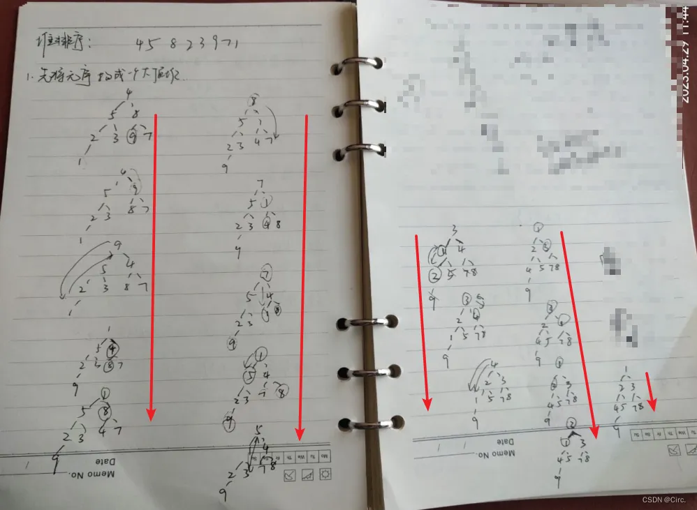 public static void heapSort(int[] arr) { if (arr == null || arr.length <= 1) return; // 建堆。 buildHeap(arr); int len = arr.length; while (len > 1) { // 把堆顶和最后一个元素交换。 swap(arr, 0, len - 1); // 交换完之后,逻辑上去掉最后一个元素。 len--; // 重新调整堆的顺序。 heapfy(arr, 0 , len); // 把每一趟排序的结果也输出一下。 print(arr); } } private static void buildHeap(int[] arr) { // 最后一个非叶子结点:2i + 1 >= arr.length --> i >= (arr.length - 1) / 2 for (int i = (arr.length - 1) / 2 - 1; i >= 0; i--) { heapfy(arr, i, arr.length); } } // 调整堆的顺序,保持大顶堆。 private static void heapfy(int[] arr, int i, int len) { while (true) { int maxPostion = i; int leftChild = 2 * i + 1; // 左孩子索引。 int rightChild = 2 * i + 2; // 右孩子索引。 // 若左孩子大于最大值,则更新最大值。 if (leftChild < len && arr[leftChild] > arr[maxPostion]) { maxPostion = leftChild; } // 若右孩子大于最大值,则更新最大值。 if (rightChild < len && arr[rightChild] > arr[maxPostion]) { maxPostion = rightChild; } if (maxPostion == i) { break; // 若已经是大顶堆了,则退出循环。 } else { swap(arr, i, maxPostion); // 若不是大顶堆,则交换位置。 i = maxPostion; } } } private static void swap(int[] arr, int i, int j) { int temp = arr[i]; arr[i] = arr[j]; arr[j] =temp; } public static void main(String[] args) { int[] arr = {6, 9, 1, 4, 5, 8, 7, 0, 2, 3}; System.out.print("排序前: "); print(arr); heapSort(arr); System.out.print("排序后: "); print(arr); } // 打印数组 public static void print(int[] arr) { if (arr == null) return; for(int i : arr) { System.out.print(i + " "); } System.out.println(); }