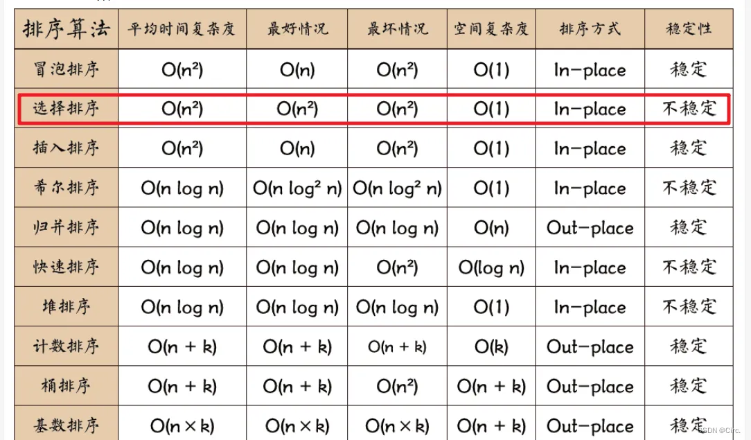 再从剩余未排序元素中继续寻找最小(大)元素,然后放到已排序序列的末尾。