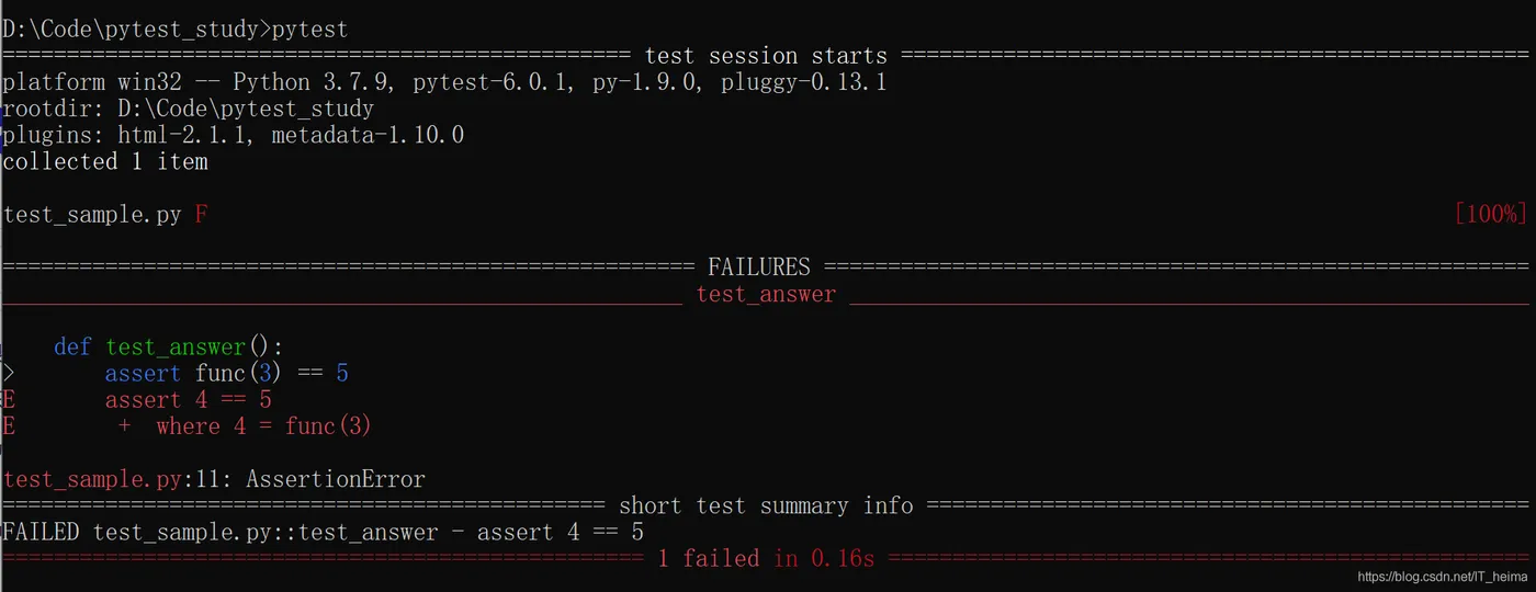 2.命令行执行,切到文件所在目录,执行pytest,结果如下: