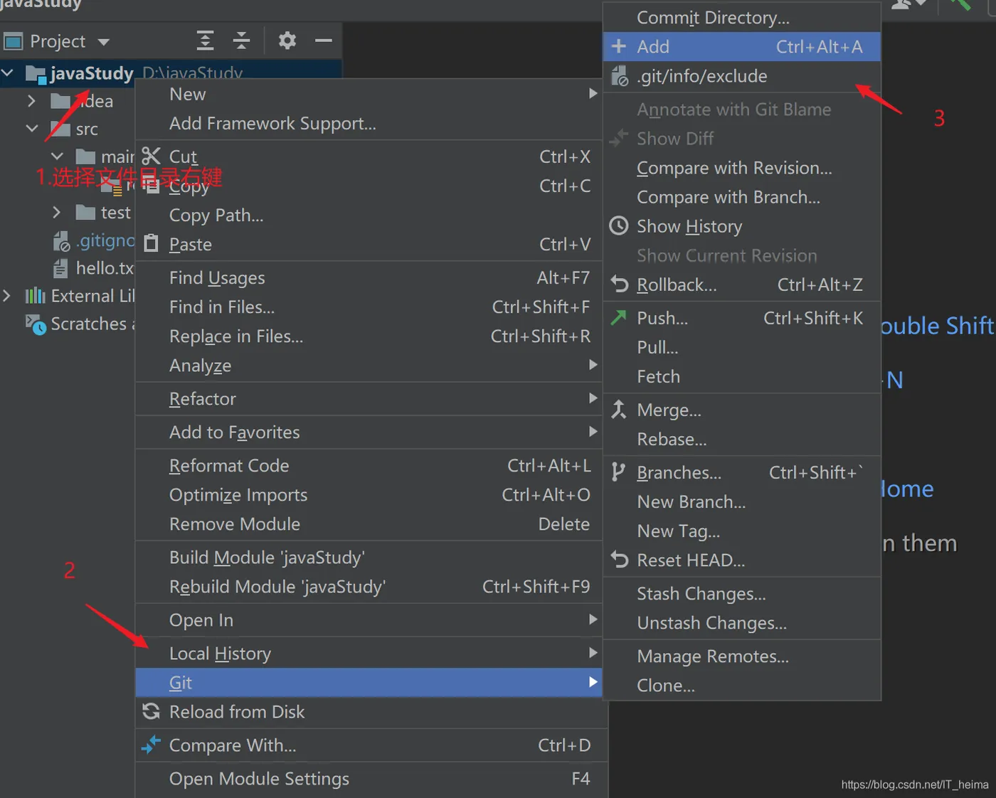 - 文件目录右键 --> Git --> Add