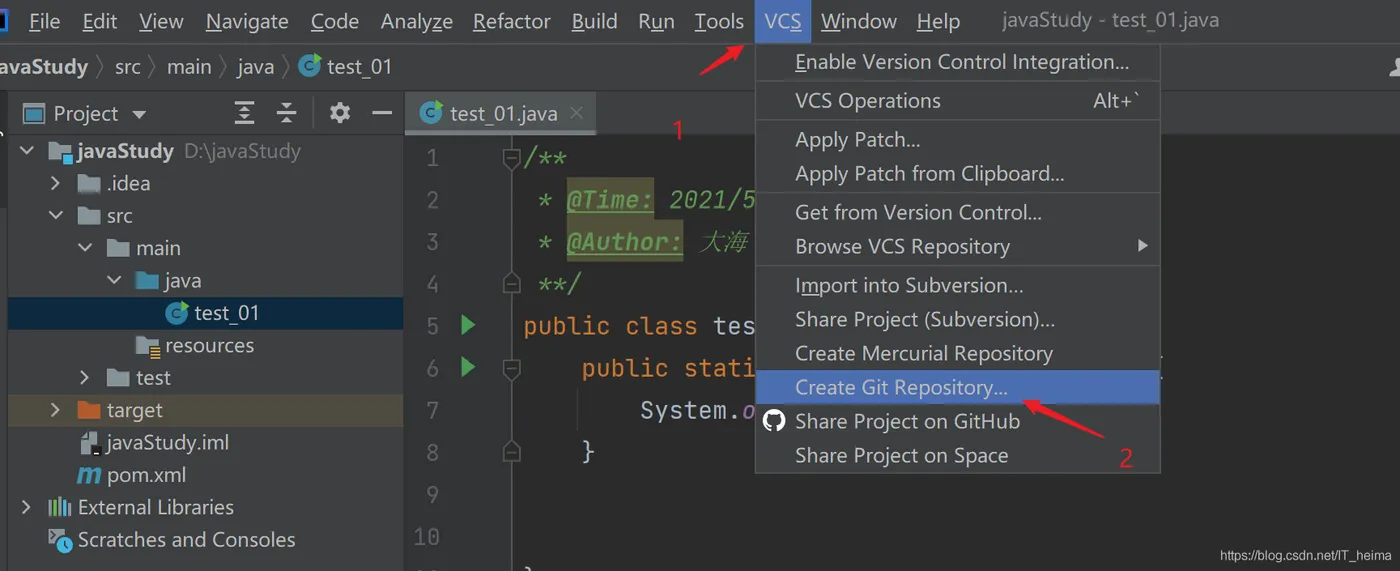- VCS --> Create Git Repisitory