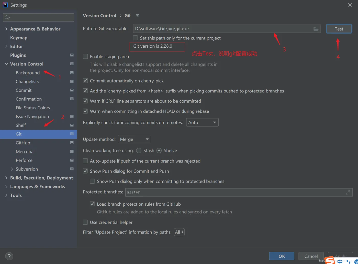 - 选择git安装目录 --> 点击Test
