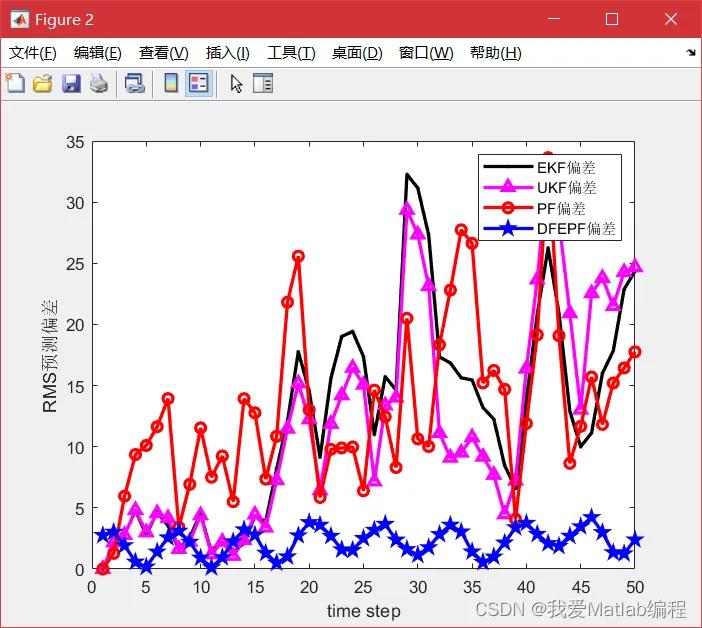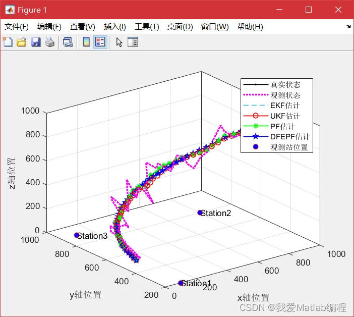 - 改进了传统的粒子算法,并与传统的非线性滤波EKF、UKF、PF算法进行对比