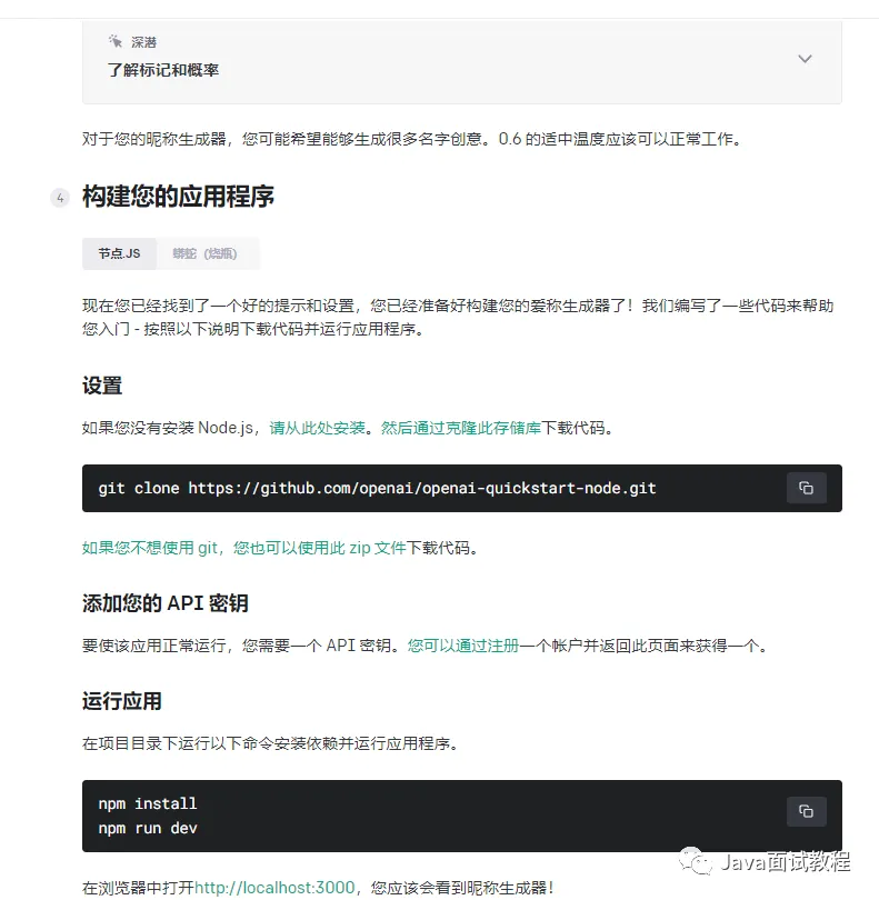 - 就如同上面一样,大公司的或者开源的一般都有一个quick start,作为不同语言的开发人员都可以从这个入口去体验。
