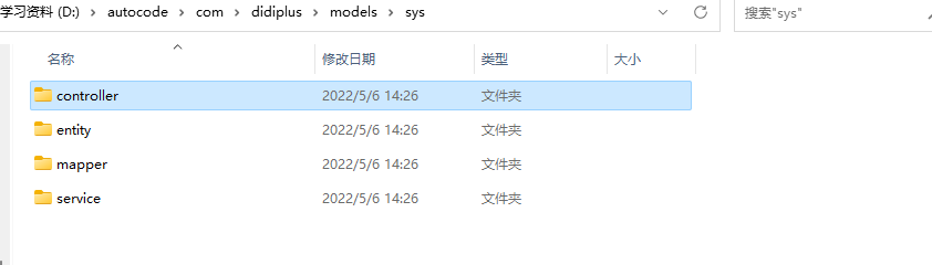 运行以上代码,会自动的在D盘生成代码,但是,生成的代码只是最基本的模板。