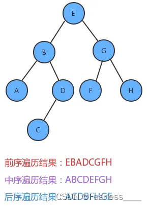 如果我们分别对下面的树使用三种遍历方式进行遍历,得到的结果如下: