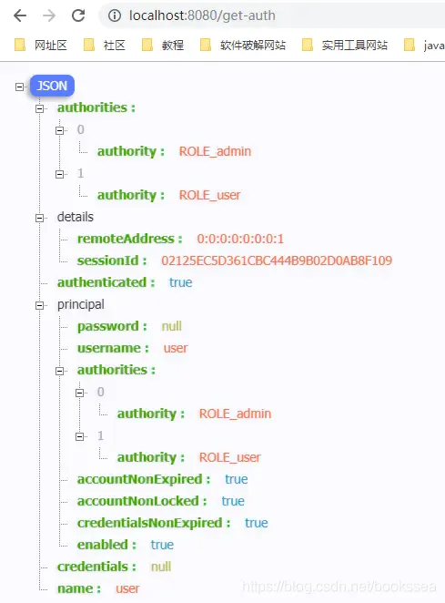 重新启动登录后,访问localhost:8080/get-auth,返回: