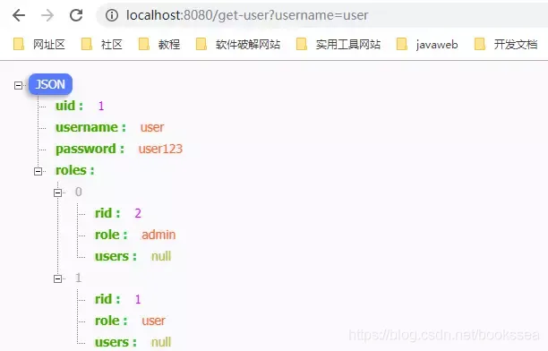 上面完成后,启动项目,访问localhost:8080/get-user?username=user,查询到的用户信息为: