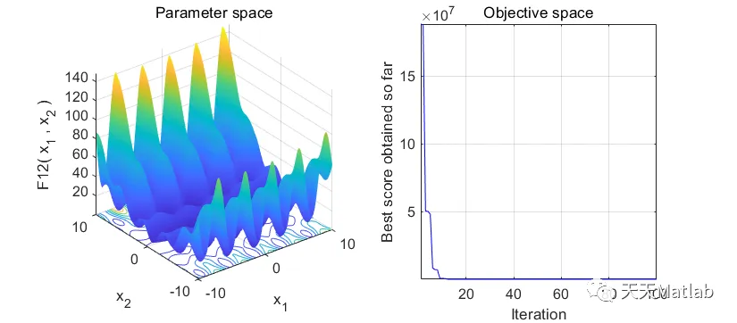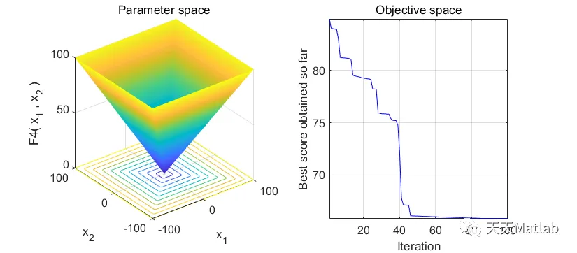 %___________________________________________________________________%% Tuna swarm optimization (TSO) %% %% Developed in MATLAB R2016b %% %% Author and programmer: Andi Tang %% %% E-mail: 418932433@qq.com %% andisu_afeu@163.com %% %% Main paper: Tuna swarm optimization: A novel swarm-based %% metaheuristic algorithm for global optimization %% DOI: 10.1155/2021/9210050 %% Computational Intelligence and Neuroscience%% %% %%___________________________________________________________________%function [lb,ub,dim,fobj] = Get_Functions_details(F)switch F case 'F1' fobj = @F1; lb=-100; ub=100; dim=30; case 'F2' fobj = @F2; lb=-10; ub=10; dim=30; case 'F3' fobj = @F3; lb=-100; ub=100; dim=30; case 'F4' fobj = @F4; lb=-100; ub=100; dim=30; case 'F5' fobj = @F5; lb=-30; ub=30; dim=30; case 'F6' fobj = @F6; lb=-100; ub=100; dim=30; case 'F7' fobj = @F7; lb=-1.28; ub=1.28; dim=30; case 'F8' fobj = @F8; lb=-500; ub=500; dim=30; case 'F9' fobj = @F9; lb=-5.12; ub=5.12; dim=30; case 'F10' fobj = @F10; lb=-32; ub=32; dim=30; case 'F11' fobj = @F11; lb=-600; ub=600; dim=30; case 'F12' fobj = @F12; lb=-50; ub=50; dim=30; case 'F13' fobj = @F13; lb=-50; ub=50; dim=30; case 'F14' fobj = @F14; lb=-65.536; ub=65.536; dim=2; case 'F15' fobj = @F15; lb=-5; ub=5; dim=4; case 'F16' fobj = @F16; lb=-5; ub=5; dim=2; case 'F17' fobj = @F17; lb=[-5,0]; ub=[10,15]; dim=2; case 'F18' fobj = @F18; lb=-2; ub=2; dim=2; case 'F19' fobj = @F19; lb=0; ub=1; dim=3; case 'F20' fobj = @F20; lb=0; ub=1; dim=6; case 'F21' fobj = @F21; lb=0; ub=10; dim=4; case 'F22' fobj = @F22; lb=0; ub=10; dim=4; case 'F23' fobj = @F23; lb=0; ub=10; dim=4; endend% F1function o = F1(x)o=sum(x.^2);end% F2function o = F2(x)o=sum(abs(x))+prod(abs(x));end% F3function o = F3(x)dim=size(x,2);o=0;for i=1:dim o=o+sum(x(1:i))^2;endend% F4function o = F4(x)o=max(abs(x));end% F5function o = F5(x)dim=size(x,2);o=sum(100*(x(2:dim)-(x(1:dim-1).^2)).^2+(x(1:dim-1)-1).^2);end% F6function o = F6(x)o=sum(abs((x+.5)).^2);end% F7function o = F7(x)dim=size(x,2);o=sum([1:dim].*(x.^4))+rand;end% F8function o = F8(x)o=sum(-x.*sin(sqrt(abs(x))));end% F9function o = F9(x)dim=size(x,2);o=sum(x.^2-10*cos(2*pi.*x))+10*dim;end% F10function o = F10(x)dim=size(x,2);o=-20*exp(-.2*sqrt(sum(x.^2)/dim))-exp(sum(cos(2*pi.*x))/dim)+20+exp(1);end% F11function o = F11(x)dim=size(x,2);o=sum(x.^2)/4000-prod(cos(x./sqrt([1:dim])))+1;end% F12function o = F12(x)dim=size(x,2);o=(pi/dim)*(10*((sin(pi*(1+(x(1)+1)/4)))^2)+sum((((x(1:dim-1)+1)./4).^2).*...(1+10.*((sin(pi.*(1+(x(2:dim)+1)./4)))).^2))+((x(dim)+1)/4)^2)+sum(Ufun(x,10,100,4));end% F13function o = F13(x)dim=size(x,2);o=.1*((sin(3*pi*x(1)))^2+sum((x(1:dim-1)-1).^2.*(1+(sin(3.*pi.*x(2:dim))).^2))+...((x(dim)-1)^2)*(1+(sin(2*pi*x(dim)))^2))+sum(Ufun(x,5,100,4));end% F14function o = F14(x)aS=[-32 -16 0 16 32 -32 -16 0 16 32 -32 -16 0 16 32 -32 -16 0 16 32 -32 -16 0 16 32;,...-32 -32 -32 -32 -32 -16 -16 -16 -16 -16 0 0 0 0 0 16 16 16 16 16 32 32 32 32 32];for j=1:25 bS(j)=sum((x'-aS(:,j)).^6);endo=(1/500+sum(1./([1:25]+bS))).^(-1);end% F15function o = F15(x)aK=[.1957 .1947 .1735 .16 .0844 .0627 .0456 .0342 .0323 .0235 .0246];bK=[.25 .5 1 2 4 6 8 10 12 14 16];bK=1./bK;o=sum((aK-((x(1).*(bK.^2+x(2).*bK))./(bK.^2+x(3).*bK+x(4)))).^2);end% F16function o = F16(x)o=4*(x(1)^2)-2.1*(x(1)^4)+(x(1)^6)/3+x(1)*x(2)-4*(x(2)^2)+4*(x(2)^4);end% F17function o = F17(x)o=(x(2)-(x(1)^2)*5.1/(4*(pi^2))+5/pi*x(1)-6)^2+10*(1-1/(8*pi))*cos(x(1))+10;end% F18function o = F18(x)o=(1+(x(1)+x(2)+1)^2*(19-14*x(1)+3*(x(1)^2)-14*x(2)+6*x(1)*x(2)+3*x(2)^2))*... (30+(2*x(1)-3*x(2))^2*(18-32*x(1)+12*(x(1)^2)+48*x(2)-36*x(1)*x(2)+27*(x(2)^2)));end% F19function o = F19(x)aH=[3 10 30;.1 10 35;3 10 30;.1 10 35];cH=[1 1.2 3 3.2];pH=[.3689 .117 .2673;.4699 .4387 .747;.1091 .8732 .5547;.03815 .5743 .8828];o=0;for i=1:4 o=o-cH(i)*exp(-(sum(aH(i,:).*((x-pH(i,:)).^2))));endend% F20function o = F20(x)aH=[10 3 17 3.5 1.7 8;.05 10 17 .1 8 14;3 3.5 1.7 10 17 8;17 8 .05 10 .1 14];cH=[1 1.2 3 3.2];pH=[.1312 .1696 .5569 .0124 .8283 .5886;.2329 .4135 .8307 .3736 .1004 .9991;....2348 .1415 .3522 .2883 .3047 .6650;.4047 .8828 .8732 .5743 .1091 .0381];o=0;for i=1:4 o=o-cH(i)*exp(-(sum(aH(i,:).*((x-pH(i,:)).^2))));endend% F21function o = F21(x)aSH=[4 4 4 4;1 1 1 1;8 8 8 8;6 6 6 6;3 7 3 7;2 9 2 9;5 5 3 3;8 1 8 1;6 2 6 2;7 3.6 7 3.6];cSH=[.1 .2 .2 .4 .4 .6 .3 .7 .5 .5];o=0;for i=1:5 o=o-((x-aSH(i,:))*(x-aSH(i,:))'+cSH(i))^(-1);endend% F22function o = F22(x)aSH=[4 4 4 4;1 1 1 1;8 8 8 8;6 6 6 6;3 7 3 7;2 9 2 9;5 5 3 3;8 1 8 1;6 2 6 2;7 3.6 7 3.6];cSH=[.1 .2 .2 .4 .4 .6 .3 .7 .5 .5];o=0;for i=1:7 o=o-((x-aSH(i,:))*(x-aSH(i,:))'+cSH(i))^(-1);endend% F23function o = F23(x)aSH=[4 4 4 4;1 1 1 1;8 8 8 8;6 6 6 6;3 7 3 7;2 9 2 9;5 5 3 3;8 1 8 1;6 2 6 2;7 3.6 7 3.6];cSH=[.1 .2 .2 .4 .4 .6 .3 .7 .5 .5];o=0;for i=1:10 o=o-((x-aSH(i,:))*(x-aSH(i,:))'+cSH(i))^(-1);endendfunction o=Ufun(x,a,k,m)o=k.*((x-a).^m).*(x>a)+k.*((-x-a).^m).*(x<(-a));end