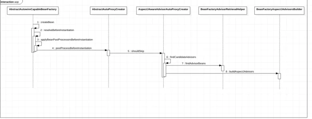 findCandidateAdvisors 的方式有两种,一种是上图第 7 步的 findAdvisorBeans 还有一种是第 8 步的 buildAspectJAdvisors。
