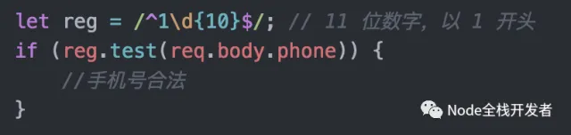 1、手机号合法性判断:复杂的,查询三大运营商的合法个人号段,这个太麻烦且实际意义不大,简单一点弄,以 1 开头的 11 位数字即可,正则判断如下图: