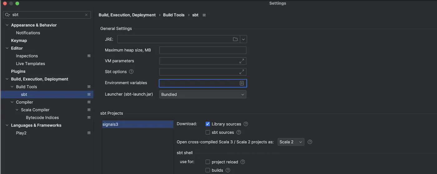 此版本对 IntelliJ IDEA 的 sbt 支持进行了许多改进。 重新打开项目后,为 sbt 设置的环境变量将被保留并正确处理。 重新设计的设置页面 _File | Settings | Build, Execution, Deployment | Build Tools | sbt_(文件 | 设置 | 构建、执行、部署 | 构建工具 | sbt)更为易用,并新增了 _Environment variables_(环境变量)字段,因此,您可以将自定义环境变量传递到 sbt-shell 进程。