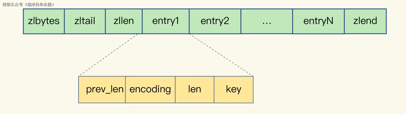 需要注意的是,这只是压缩列表中每个 entry 的结构,压缩列表本身还有其他的元数据信息,比如 zlbytes(压缩列表的总字节数)、zltail(尾部 entry 的偏移量)等。这些信息一起构成了完整的压缩列表数据结构。