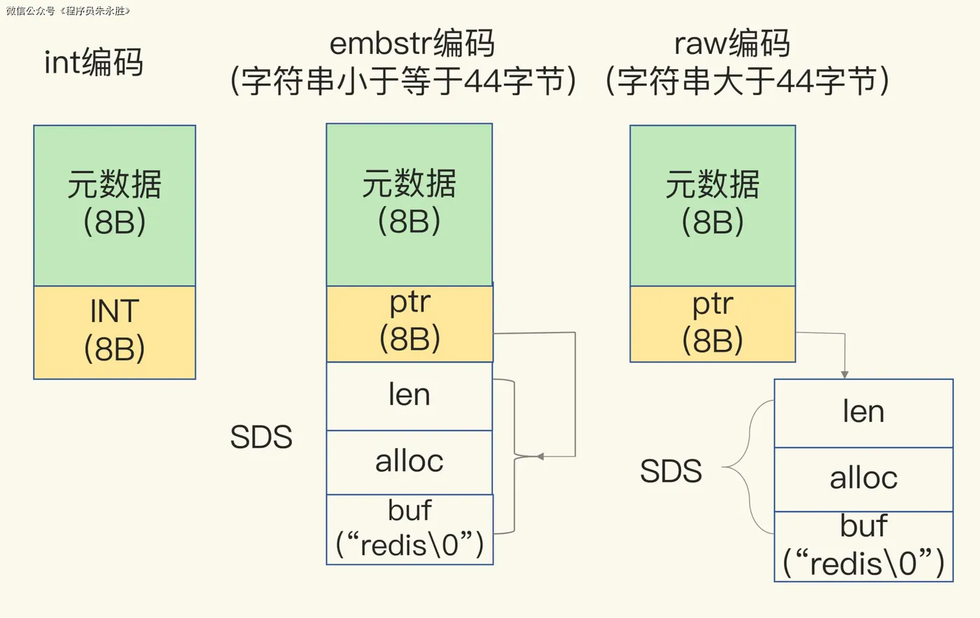 然而,当字符串的长度大于44字节时,SDS的数据量就开始变多了。为了避免内存浪费,Redis不再将SDS和RedisObject布局在一起,而是给SDS分配独立的空间,并使用指针指向SDS结构。这种布局方式被称为raw编码模式。