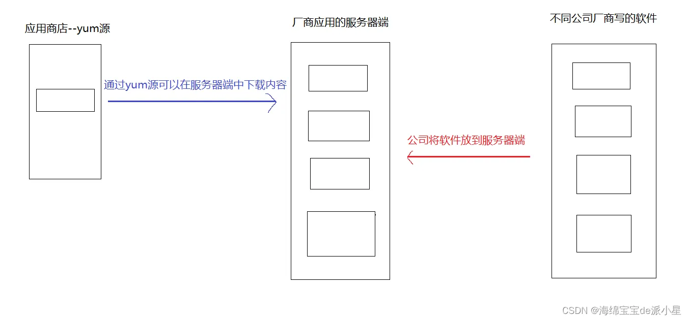 通常来说,如果采用前两种方法进行的安装是很繁琐的,因此Linux中有这样一种比较方便的安装工具就是yum,如果类比到移动端,yum扮演的角色就是应用商店
