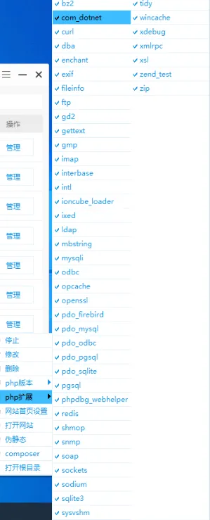 好在phpstudy提供了PHP扩展的勾选项,让我们不必再一一配置这些PHP扩展(这也是笔者喜欢使用集成环境部署网站的原因)