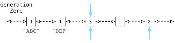 这就是为什么Python要引入Generational GC算法的原因!正如Ruby使用一个链表(free list)来持续追踪未使用的、自由的对象一样,Python使用一种不同的链表来持续追踪活跃的对象。而不将其称之为“活跃列表”,Python的内部C代码将其称为零代(Generation Zero)。每次当你创建一个对象或其他什么值的时候,Python会将其加入零代链表: