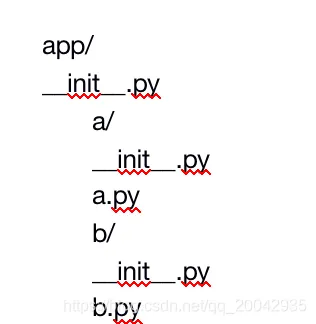 app是最顶层的包,a和b是它的子包,可以这样导入: