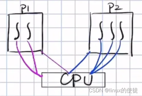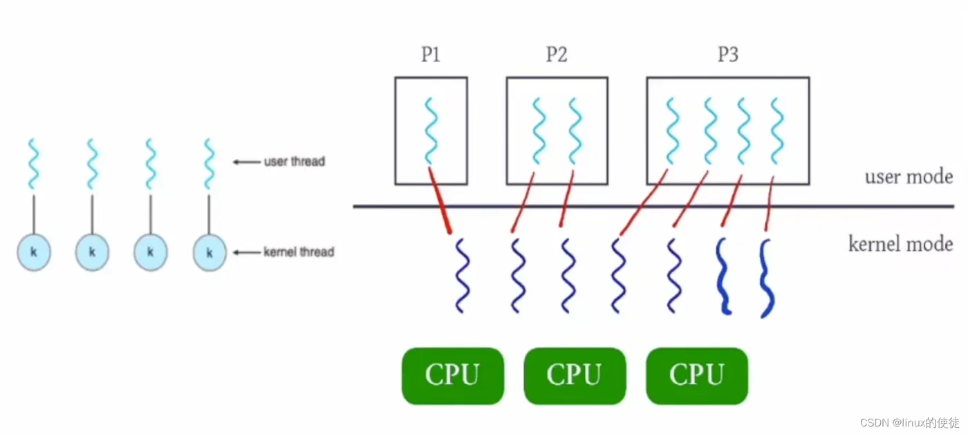 我们linux系统的线程是系统范围竞争,我们前面学了用户模型和系统模型1对1模型,其实linux就是1