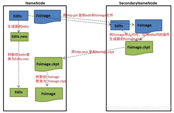 4、NameNode用新的fsimage.ckpt替换旧的fsimage