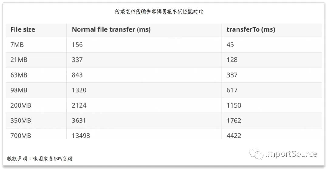 可以看出速度快出至少三倍多。Kafka在文件传输的过程中正是使用了零拷贝技术对文件进行拷贝。建议以后多用FileChannel的transferTo吧。