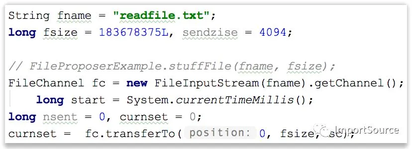 在Java中的零拷贝实现是在FileChannel中,其中有个方法transferTo(position,fsize,src)。