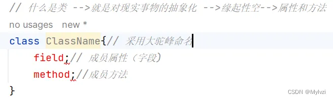 3.类:理解为图纸,不占用物理地址;但是通过图纸创建出房子的时候,房子(对象)占用物理地址。