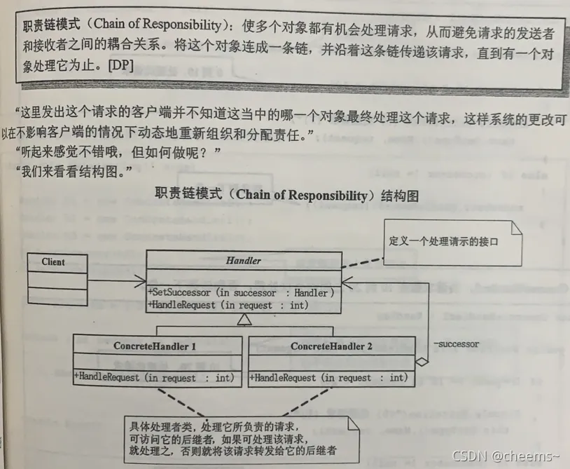 使多个对象都有机会处理请求,从而避免请求的发送者和接收者之间的耦合关系,将这个对象连成一条链,并沿着这条链传递该请求,直到有一个对象处理它为止
