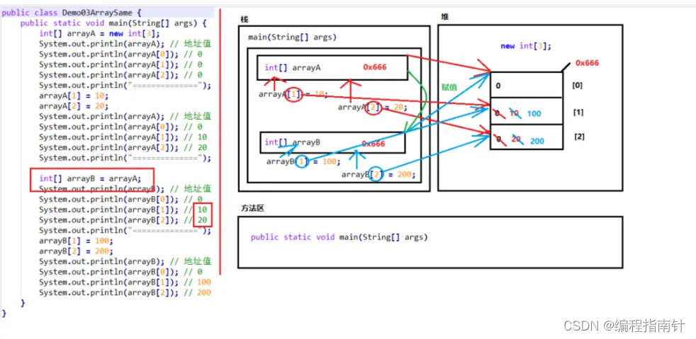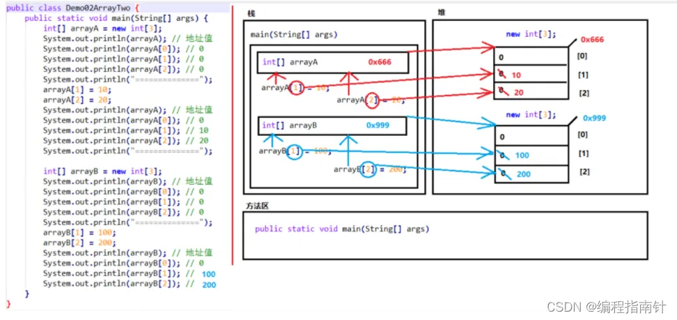 arr = null 这行代码,意味着变量arr将不会在保存数组的内存地址,也就不允许再操作数组了,因此运行的时候会抛出 NullPointerException 空指针异常。在开发中,数组的越界异常是不能出现的,一旦出现了,就必须要修改我们编写的代码。