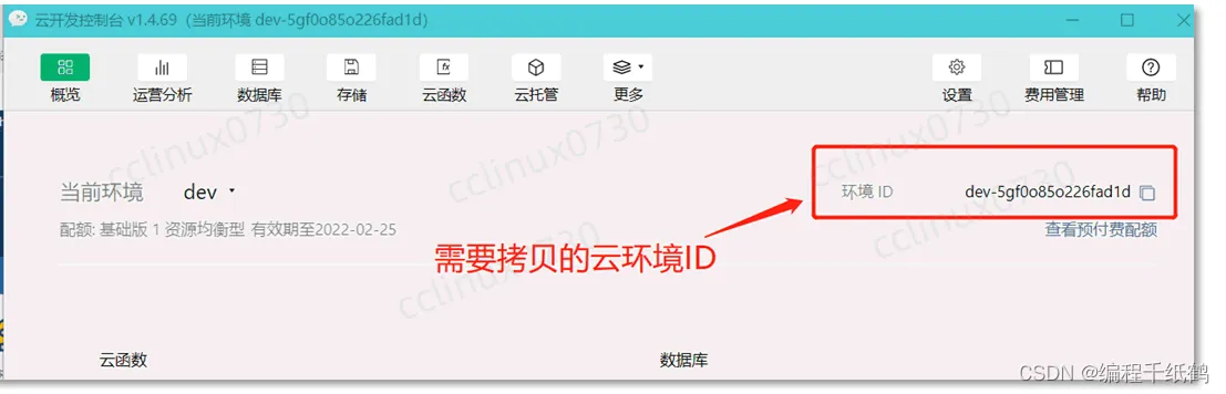 每个环境相互隔离,拥有唯一的环境 ID (拷贝此ID,后面配置会用到),包含独立的数据库实例、存储空间、云函数配置等资源。