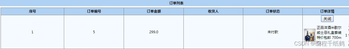 这个模块的功能是管理用户订单信息。包括订单的编号,收货人以及订单详情等。如图5-15所示: