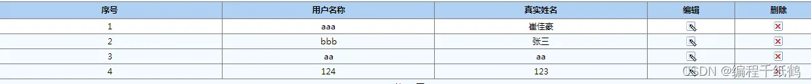 注册用户管理包括序号,用户名,真实姓名,编辑以及删除。