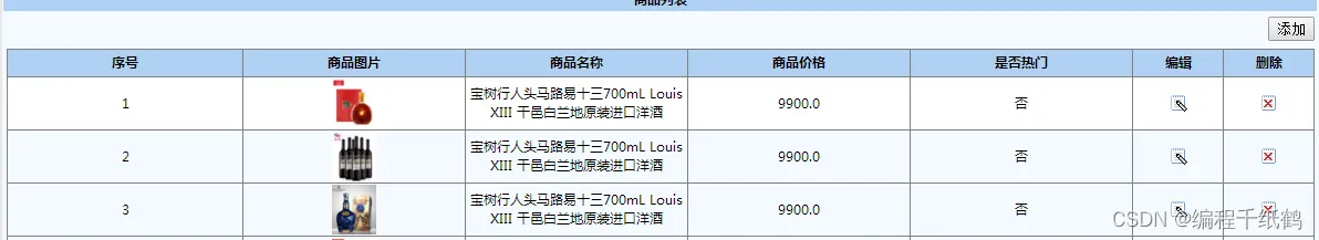 这个模块的功能是对商品进行管理的,可以查看商品的图片,名称价格,是否热门和进行编辑。如图5-14所示: