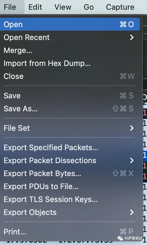大家好,我是阿萨。 前几天给大家讲解了Wireshark的最基本的用法。大家也可以算是Wireshark 入门了。从今天开始继续把Wireshark 的每个菜单介绍一遍。介绍完之后,再讲解具体的实际场景。今天File 菜单。