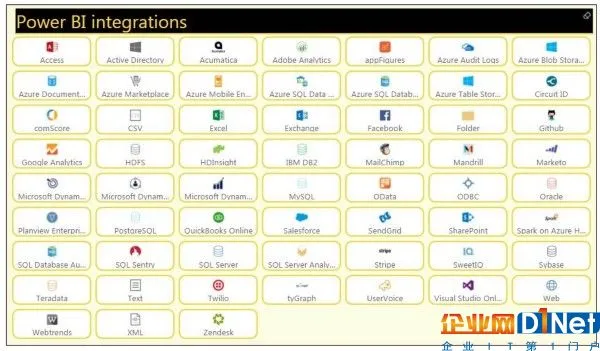 3. Power BI 不仅支持微软自家的数据格式,比如 Excel、SQL Server、Dynamic CRM 等;还支持 SAP、Oracle、MySQL、DB2 等。几乎市面上所有的数据格式。下面是 Power BI 支持的部分数据格式,总有一款属于你: