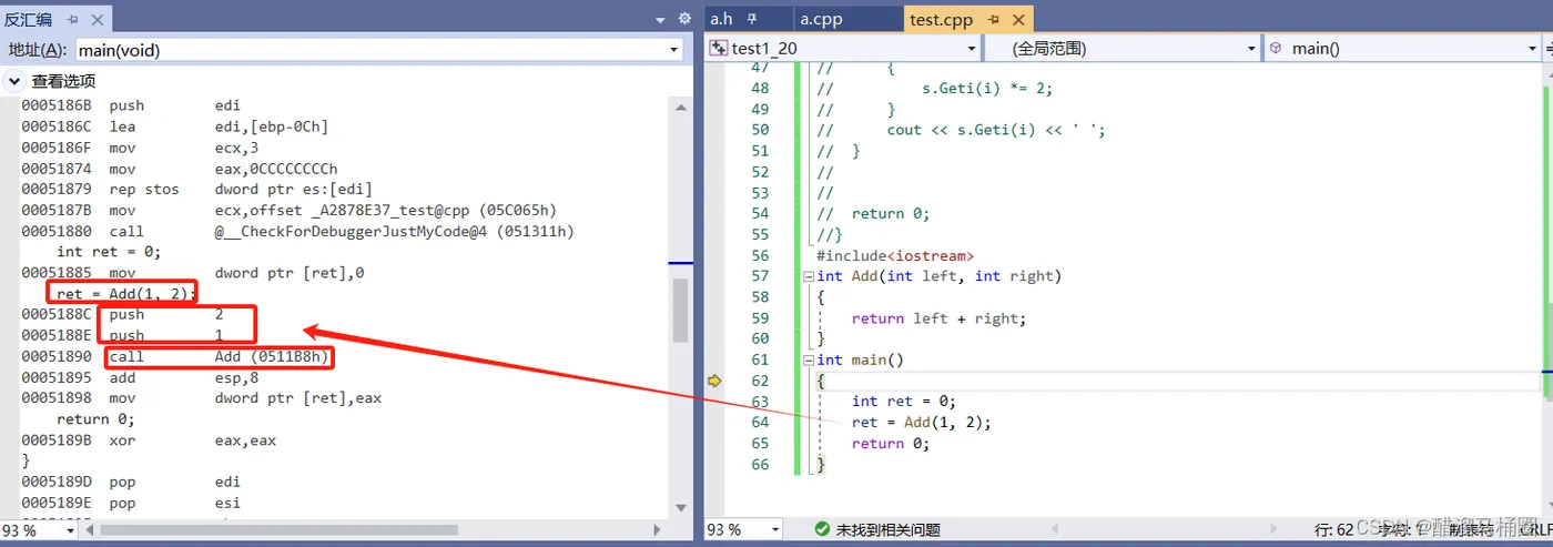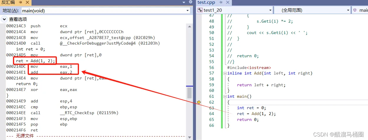 - 在release模式下,查看编译器生成的汇编代码中是否存在call Add