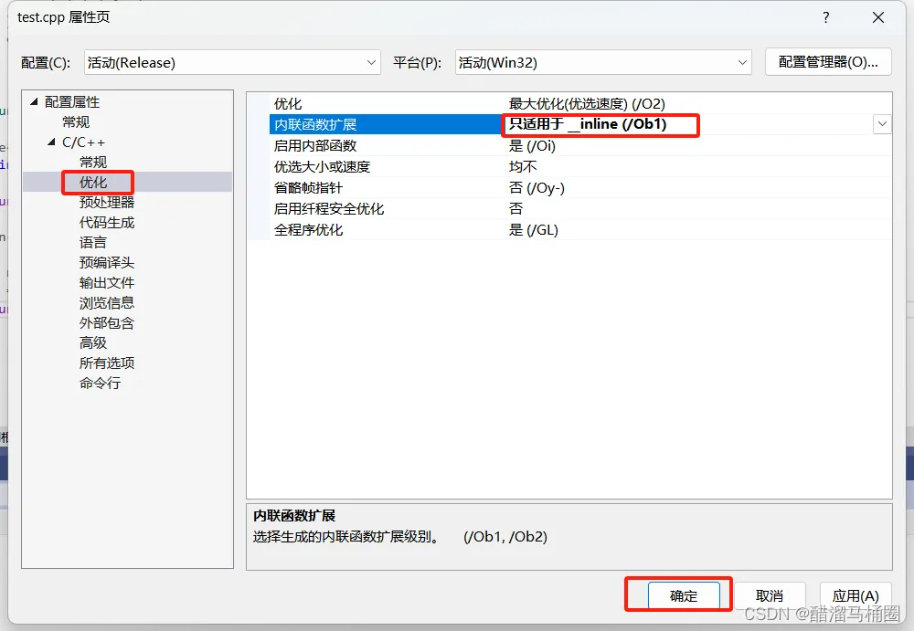- 在debug模式下,需要对编译器进行设置,否则不会展开(因为debug模式下,编译器默认不会对代码进行优化)以vs2019为例