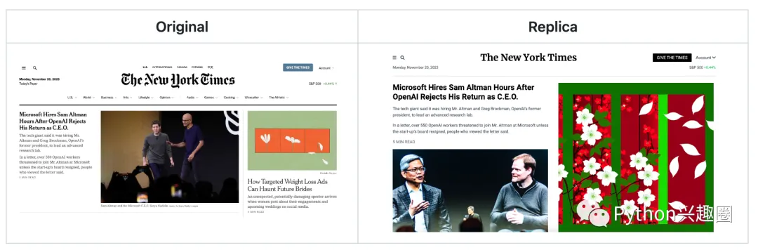 这个项目演示了,如何使用 GPT-4 Vision 和 DALL-E 3 将设计稿/网页截图转换成源码(HTML + Tailwind CSS),还原度非常高。