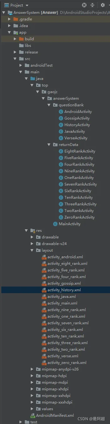 <?xml version="1.0" encoding="utf-8"?> <manifest xmlns:android="http://schemas.android.com/apk/res/android" package="top.gaojc.answer"> <application android:allowBackup="true" android:icon="@drawable/answer" android:label="@string/app_name" android:roundIcon="@drawable/answer" android:supportsRtl="true" android:theme="@style/AppTheme"> <activity android:name="top.gaojc.answerSystem.returnData.TenRankActivity"></activity> <activity android:name="top.gaojc.answerSystem.returnData.NineRankActivity" /> <activity android:name="top.gaojc.answerSystem.returnData.EightRankActivity" /> <activity android:name="top.gaojc.answerSystem.returnData.SevenRankActivity" /> <activity android:name="top.gaojc.answerSystem.returnData.SixRankActivity" /> <activity android:name="top.gaojc.answerSystem.questionBank.JavaActivity" /> <activity android:name="top.gaojc.answerSystem.questionBank.AndroidActivity" /> <activity android:name="top.gaojc.answerSystem.questionBank.GossipActivity" /> <activity android:name="top.gaojc.answerSystem.questionBank.VerseActivity" /> <activity android:name="top.gaojc.answerSystem.returnData.FiveRankActivity" /> <activity android:name="top.gaojc.answerSystem.returnData.FourRankActivity" /> <activity android:name="top.gaojc.answerSystem.returnData.ThreeRankActivity" /> <activity android:name="top.gaojc.answerSystem.returnData.TwoRankActivity" /> <activity android:name="top.gaojc.answerSystem.returnData.OneRankActivity" /> <activity android:name="top.gaojc.answerSystem.returnData.ZeroRankActivity" /> <activity android:name="top.gaojc.answerSystem.questionBank.HistoryActivity" /> <activity android:name="top.gaojc.answerSystem.MainActivity"> <intent-filter> <action android:name="android.intent.action.MAIN" /> <category android:name="android.intent.category.LAUNCHER" /> </intent-filter> </activity> </application> </manifest>