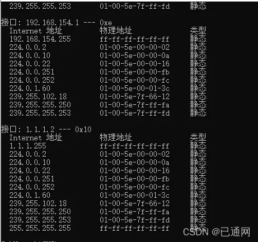 Arp -a//查看ip地址对应的MAC地址的信息表