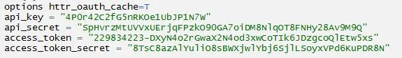 获取密钥和密码后便可以在R里面授权我们的应用程序以代表我们访问Twitter: