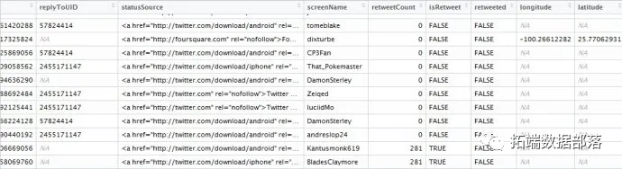 由于默认的抓取结果是json格式,因此使用twlisttodf函数将其转换成数据框