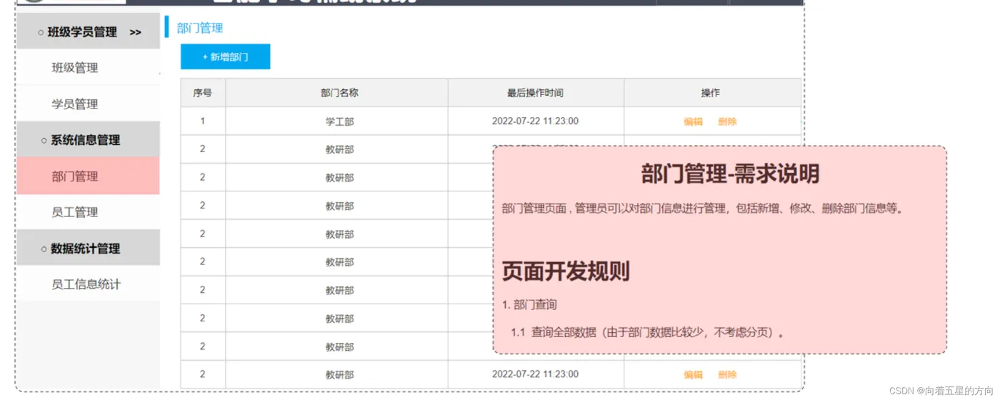 通过页面原型以及需求描述,我们可以看到,部门查询,是不需要考虑分页操作的。