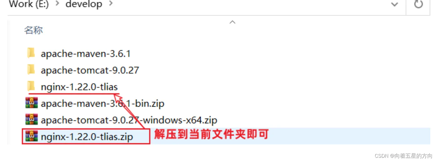 2、拷贝到一个没有中文不带空格的目录后,进行解压(解压到当前目录)